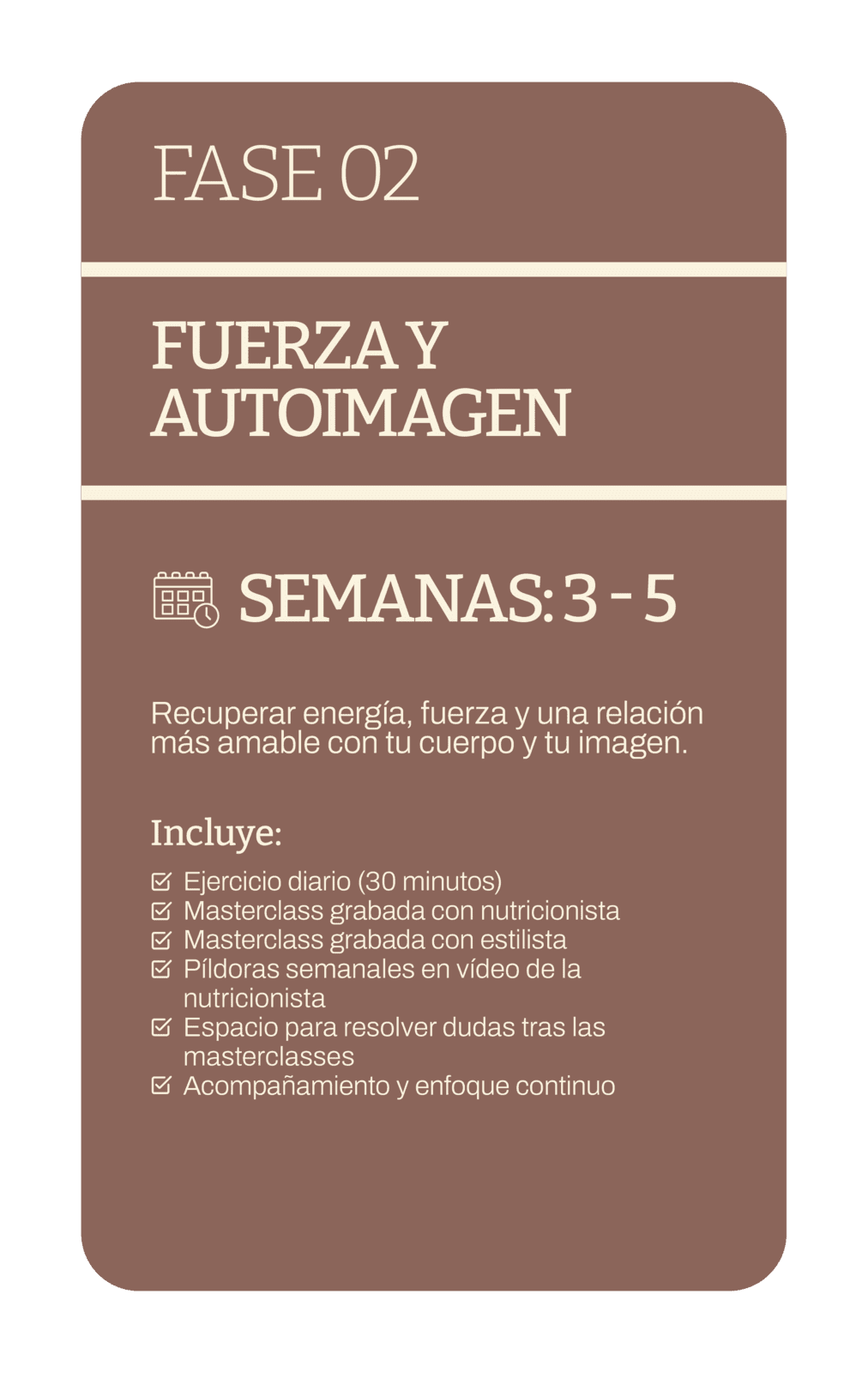 Además, todas las semanas tendrás píldoras en vídeo de la nutricionista, con orientación clara y aplicable a la vida real.