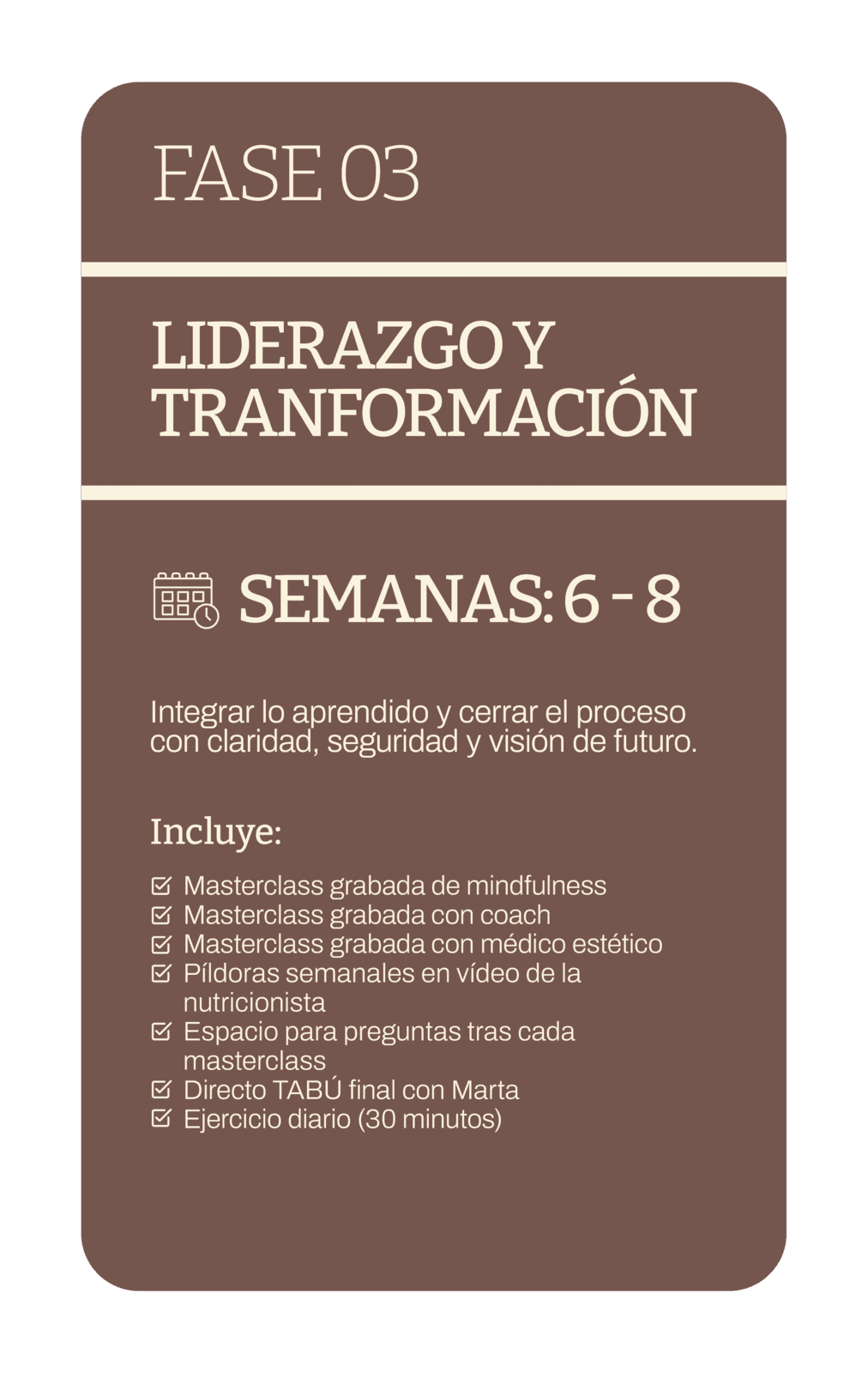 cada área de tu transformación.